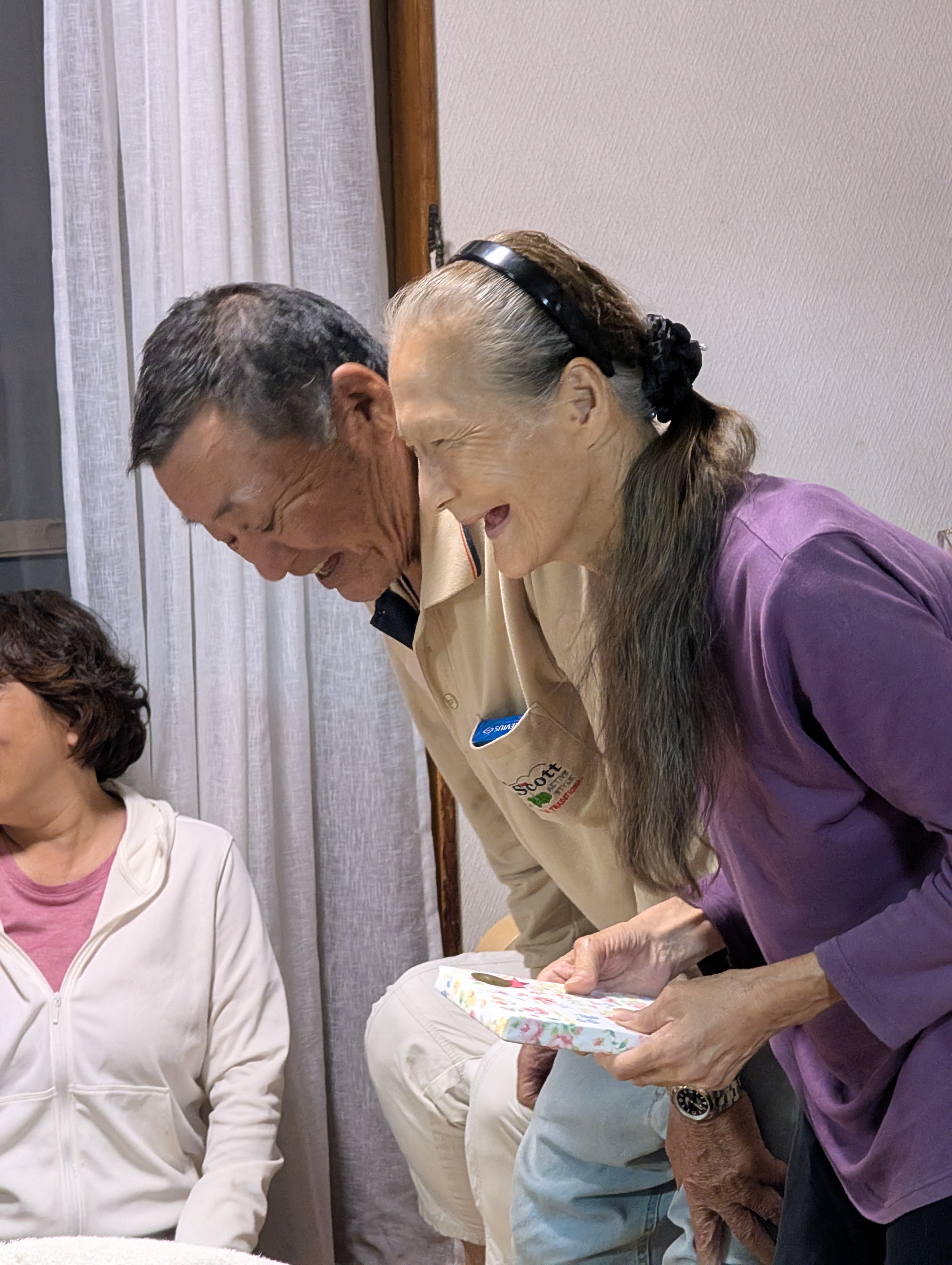 Den siste uken har vi hatt mange spennende møteplasser. Hver fredag har vi husmøte hjemme hos oss. Kjæresten til en tidligere hjemløs tok imot Jesus og ble døpt sist fredag. Hun er 71 og han er 78 år. Han ble døpt for tre år siden, i parken der vi har matutdeling. Etter det måtte vi redde han fra gata, og han måtte legges inn på et sykehus da lungene og hjertet ble veldig svakt. Han kom seg litt mer til hektene og vi fikk han inn på et gamlehjem for rehabilitering. Derifra rømte han og flyttet inn til ei venninne. Ruth sin far Nathan, har fulgt opp begge to og etter en del bibeltimer med denne 70-årige damen, så var hun klar. Hun ble døpt hjemme i vår huskirke sist fredag. Det gleder vi oss veldig over. Blant vitnene til dåpen var det to grupper fra Norge, min mor og bror, og en far og datter fra Vestlandet som i stedet for konfirmasjon er på tur langt bort fra Norge for å bli utfordret av nye kulturer og se misjonsarbeid. Det var godt for henne som ble døpt å kjenne at vi er en verdensvid familie i Jesus. Vi ser at mange av dem som tar imot Jesus her i Japan kjenner på at de ikke blir sett, eller har en fungerende familie. Derfor er Guds familie svært viktig. Be for troslivet til denne damen, men også de fra Norge som fikk oppleve noe veldig annerledes men allikevel veldig kjent, et kristent fellesskap og enhet på tvers av kulturer. De blir gift nå snart, og tenk at vielsen og bryllupet til og med skal holdes i stua vår! Når vi snakker om vielse, må jeg nevne at Ruth og jeg har sett at parkurs/ekteskapskurs leder folk til tro. Vi har sett at halvparten av de kursene vi holder for par, der har enten begge eller en av ektefellene blitt frelst i løpet av ekteskapskurset! Vi tror på ekteskap og at Gud ga oss det nettopp for gode rammer og med et fokus. Og da er det ikke mer enn fantastisk å se personer komme til tro på Jesus gjennom det!