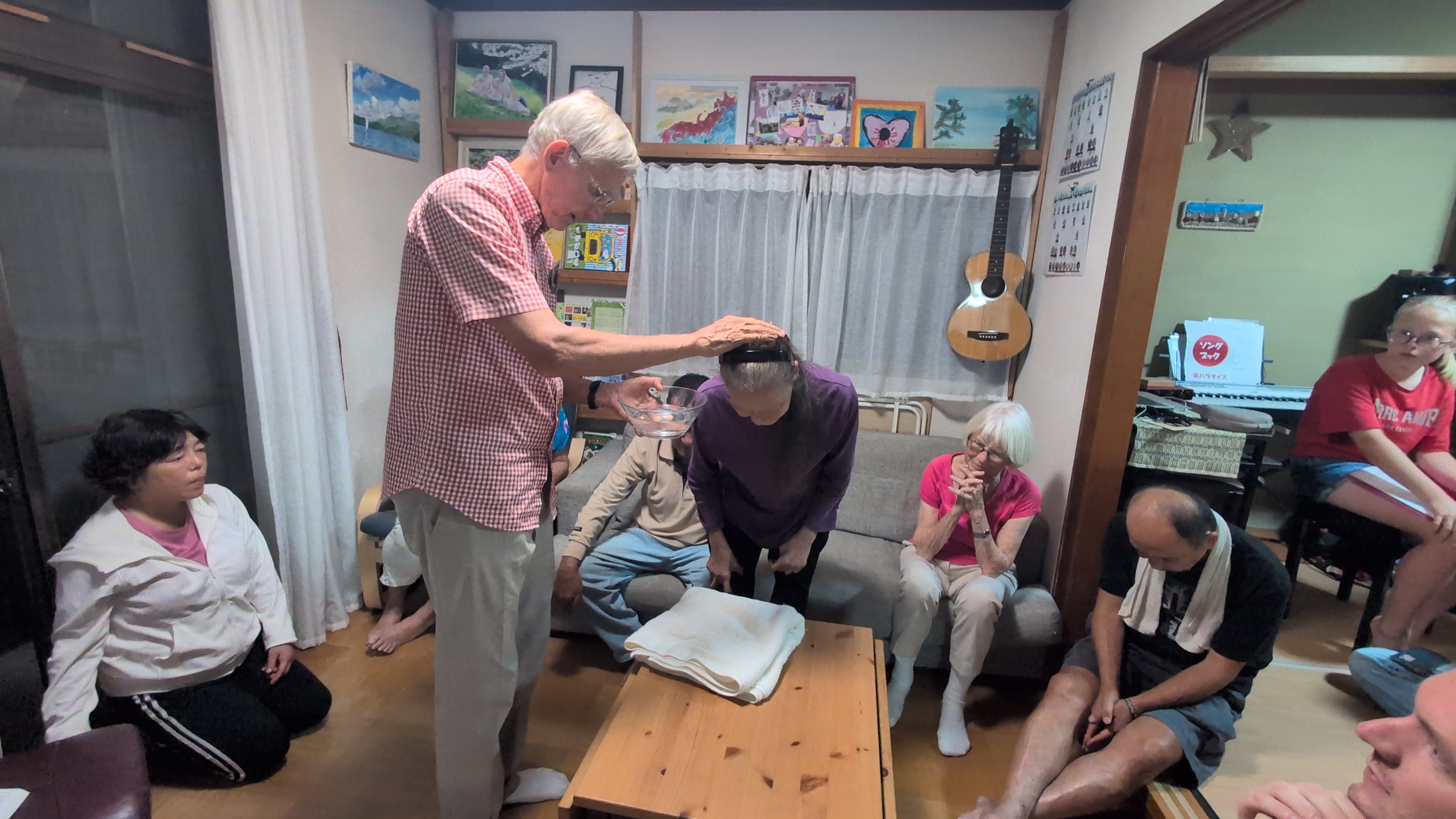 Her blir Rieko-san døpt i vår huskirke.